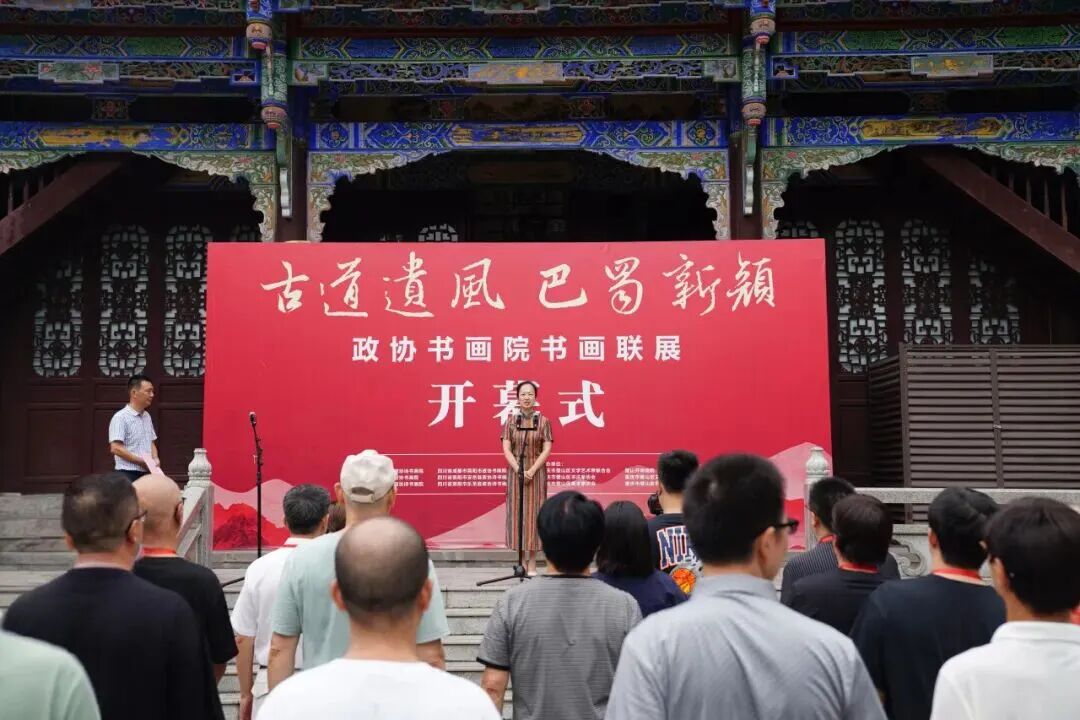 9月4日,“古道遗风·巴蜀新颜”政协书画院书画联展开幕式在区美术馆举行,众多艺术家代表齐聚现场,共赴这场文化盛宴。区政协副主席、诗书画院院长雍湘参加。此次联展由区政协诗书画院牵头,联动简阳、乐至、安岳、大足、铜梁五地政协(诗)书画院共同举办,共展出121幅作品,涵盖书法、国画、油画、版画等多个门类。旨在追寻古道上的历史记忆,传承巴蜀文化的深厚底蕴。展现新时代巴蜀地区在经济发展、社会进步、生态建设等方面的崭新面貌,用笔墨丹青书写区域协同发展的生动篇章。