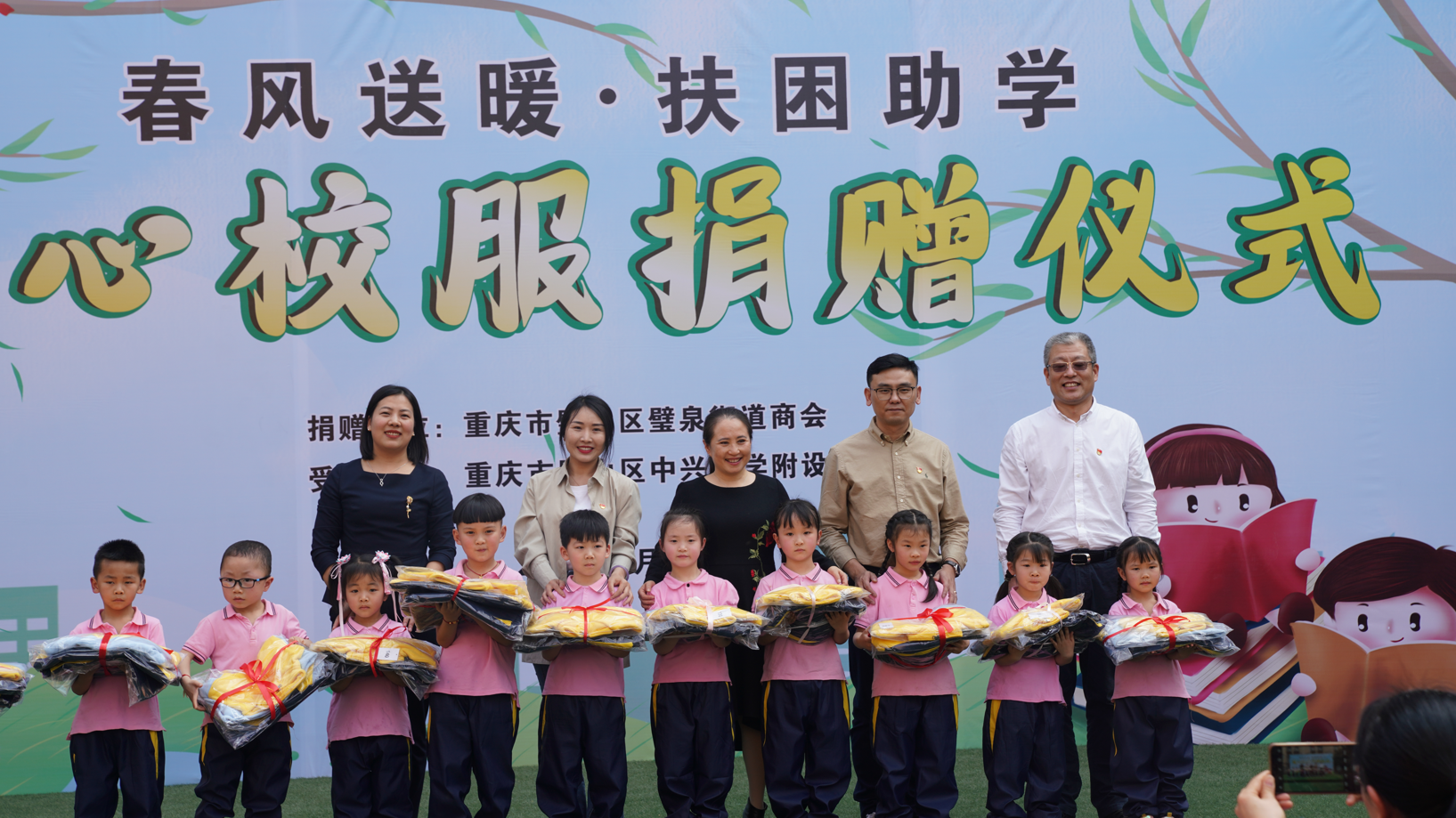 3月11日,璧山区政协副主席刘华带领区政协教科卫体委、区工商联及璧泉商会到青杠街道中兴小学附设幼儿园开展“春风送暖·扶困助学”爱心校服捐赠助学活动,为困难儿童捐助200套校服,给孩子们送去了春天的温暖。刘华勉励孩子们心怀感恩、珍惜韶华、不负时代、早日成才,要求老师们要以披荆斩棘的姿态、石印铁痕的实干,用汗水和匠心,奋力施彩璧山教育高质量发展画卷。(柯昌蜀 邓娟)