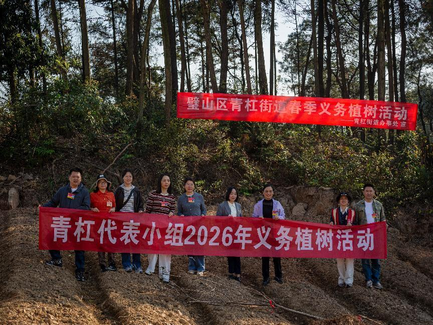 近日,区人大青杠街道工委组织部分区人大代表前往鹿王谷开展义务植树活动,以实际行动履“植”尽责,为绿色家园建设添砖加瓦。