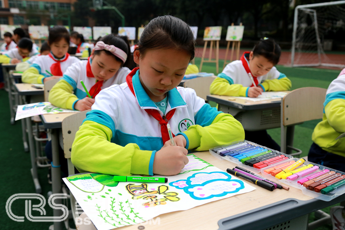 璧山网讯  4月3日,由区委宣传部、区文明办、区教委主办的“我们的节日——童绘清明·致敬先烈”主题活动在我区各小学开展,学生们通过手抄报、黑板报等方式反映清明节习俗,纪念为新中国成立献出热血的革命先烈。图为北街小学学生绘制现场。(周本建)