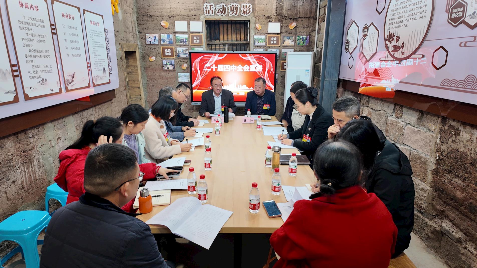 近日,区政协副主席周梁来到七塘“智慧坪上”委员工作室,向区政协农业农村委、福禄小组、大路小组的委员宣讲党的二十届四中全会精神。