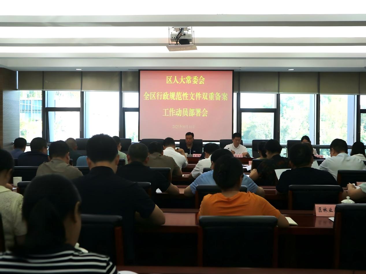 近日,为进一步推进行政规范性文件双重备案工作,区人大常委会召开行政规范性文件双备案工作动员部署会。区人大监察法制委、区人大常委会法制工委相关人员和有关部门负责人参会。
