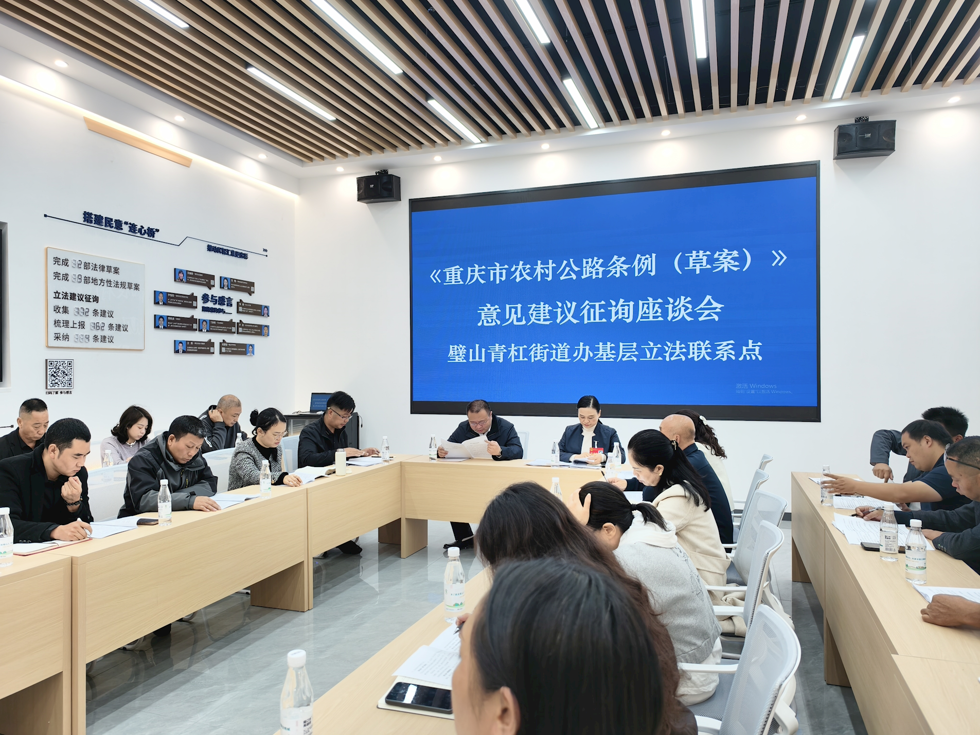 为扎实推进《重庆市农村公路条例》高质量制定,11月5日,璧山青杠街道办基层立法联系点组织召开《重庆市农村公路条例(草案)》建议征求座谈会。区人大常委会法制工委、区交通运输委、青杠街道司法所相关负责人,部分人大代表、立法信息采集员等20余人齐聚一堂,围绕农村公路建设、管理、养护等核心议题畅所欲言、建言献策。